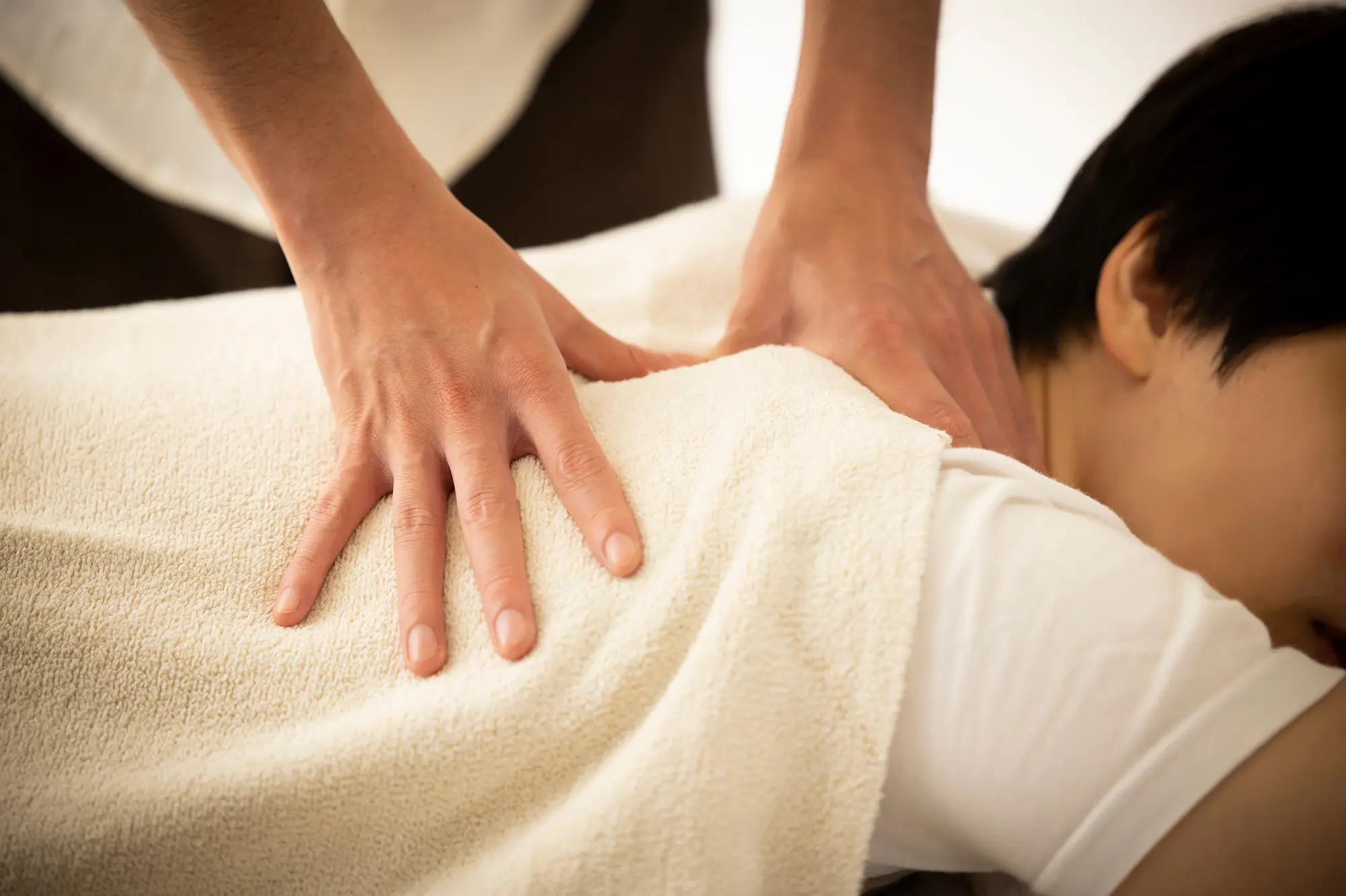 最初に軽くマッサージし、体を緩め、ほぐし、どこが悪いのかを探す目的で使います。鍼をしたあとにもマッサージして体の緊張をとり、取り残した場所がないかを確認するために行います。